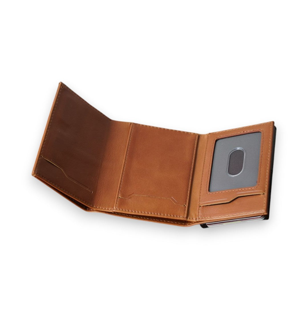 Fabricado en 100% cuero genuino, combina elegancia con resistencia para el uso diario. Su cuerpo incorpora un tarjetero principal de aluminio de alta durabilidad que protege tus tarjetas, evita que se doblen y ofrece bloqueo RFID para impedir clonaciones no autorizadas.