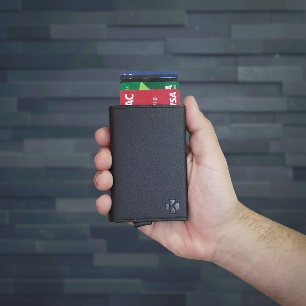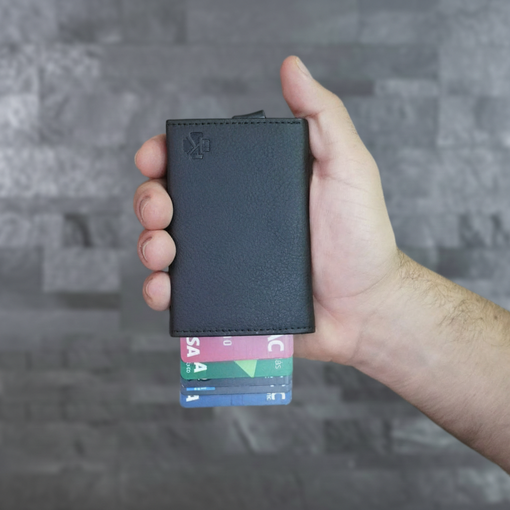 Gracias a su sistema de sujeción de alta precisión, tus tarjetas permanecen en su lugar, sin importar cómo sostengas el tarjetero.