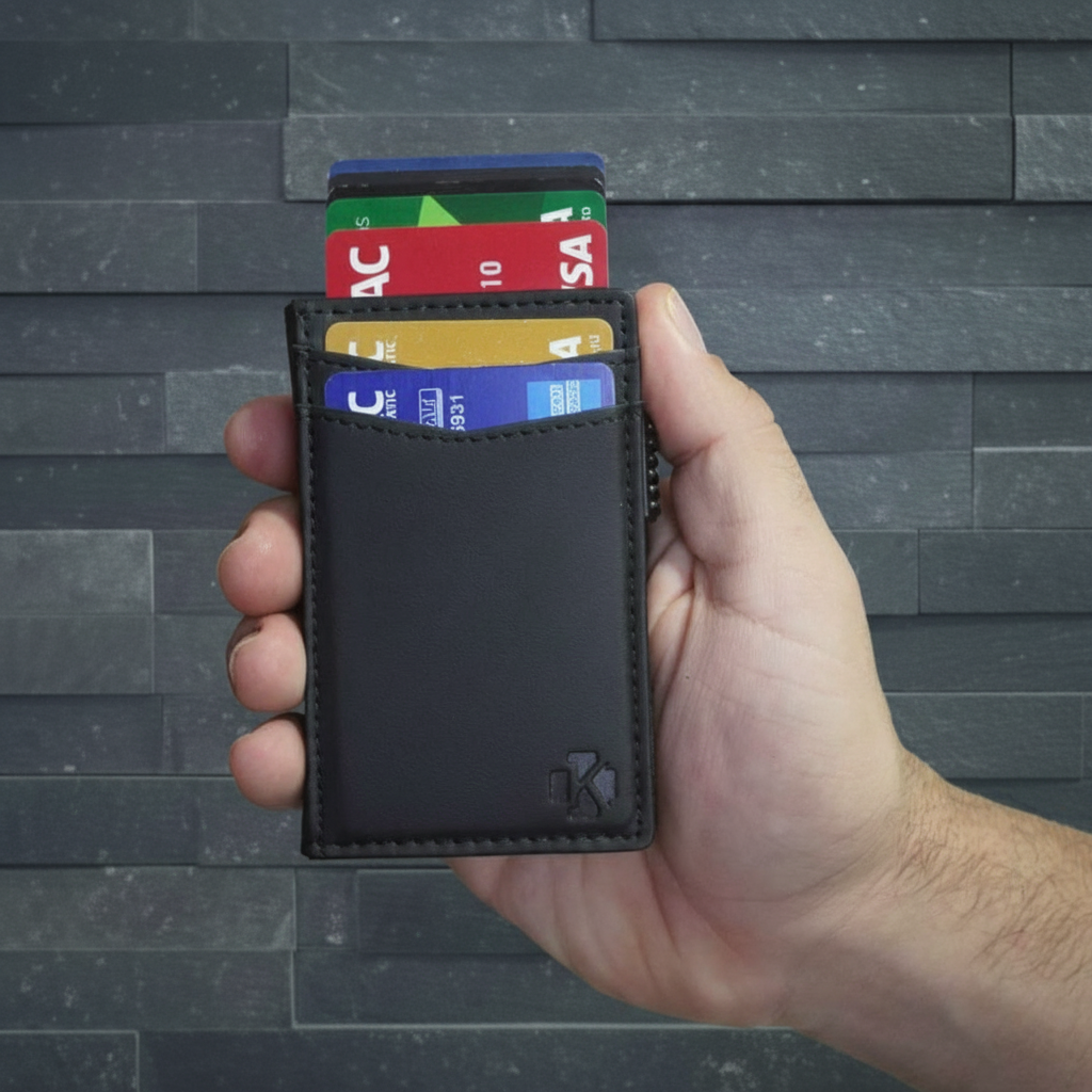 Gracias a su sistema de sujeción de alta precisión, tus tarjetas permanecen en su lugar, sin importar cómo sostengas el tarjetero.