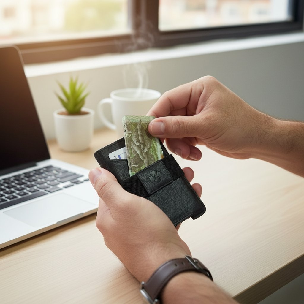 Llevá tus billetes de forma práctica y segura gracias a la banda elástica del Master Wallet, pensada para quienes valoran la organización sin perder estilo.